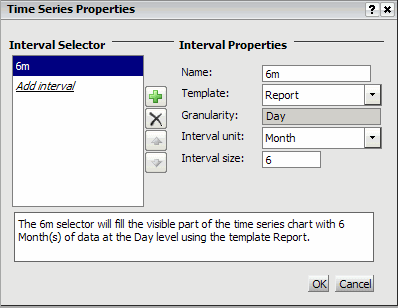 5. Interval selectors let users select the time period for which they want to view data in the widget, allowing users to examine the data at different levels of detail. You can add, rearrange, or delete interval selectors in a Time Series widget:
